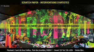 Fluctuart is pleased to welcome the artists Joachim Romain // Matthieu Dagorn // Stew on Thursday, July 9h for an intervention on the exhibition. ABOUT THE EXHIBITION SCRATCH PAPER, a concept at the heart of collective and participatory creation, which allows the intervention of an infinite number of artists. Installation composed of individual creations printed …