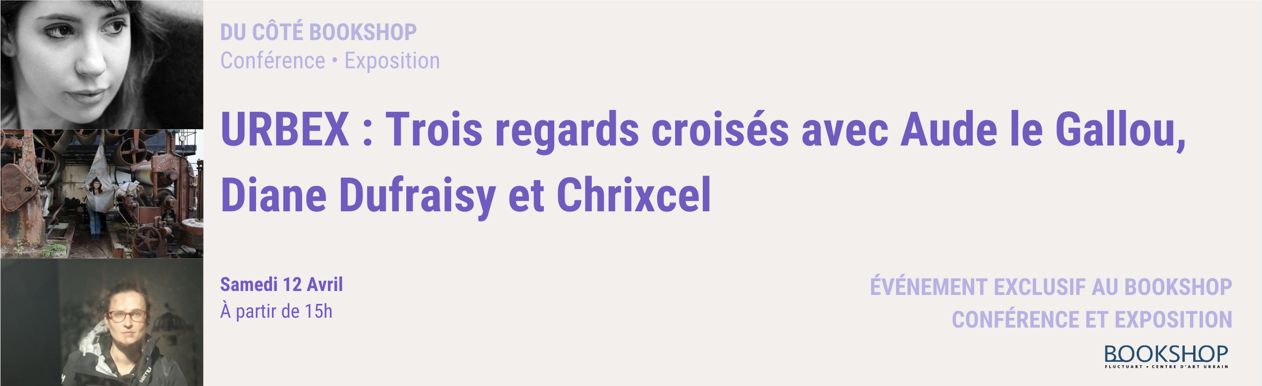 📅 Rendez-vous le samedi 12 avril à 15h à FLUCTUART pour une conférence inédite sur l’exploration urbaine ! Trois intervenantes partageront leurs visions de l’URBEX à travers leurs pratiques et recherches lors d’une conférence qui se déroulera en cale d’exposition de 15h à 16h30. Trois regards complémentaires sur l’urbex : Aude Le Gallou explore la photographie comme méthode de recherche universitaire, Diane Dufraisy navigue entre approche documentaire et création artistique, tandis que Chrixcel revisite cette pratique à travers le prisme de l’art urbain en friche.