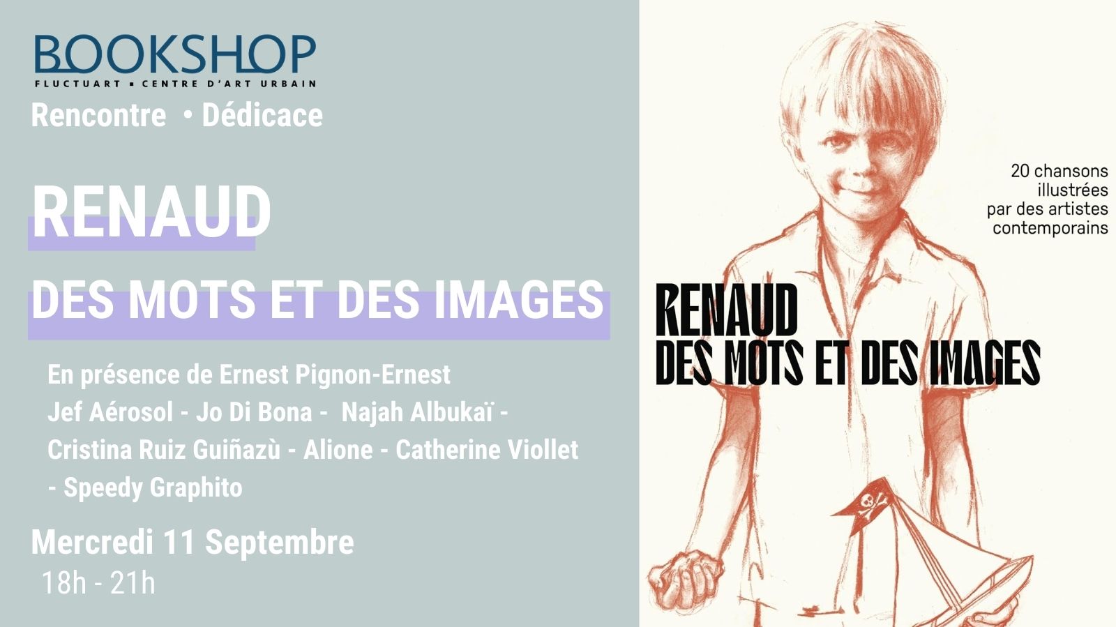 À l’occasion de la sortie du livre Renaud des mots et des images, nous avons le plaisir de vous inviter à une séance de dédicaces collectives exceptionnelle. Rejoignez-nous au Bookshop le mercredi 11 septembre de 18h à 21h en compagnie de Ernest Pignon-Ernest, Jef Aérosol, Jo Di Bona, Najah Albukaï, Cristina Ruiz Guiñazú, Alione, Catherine Viollet et Speedy Graphito.