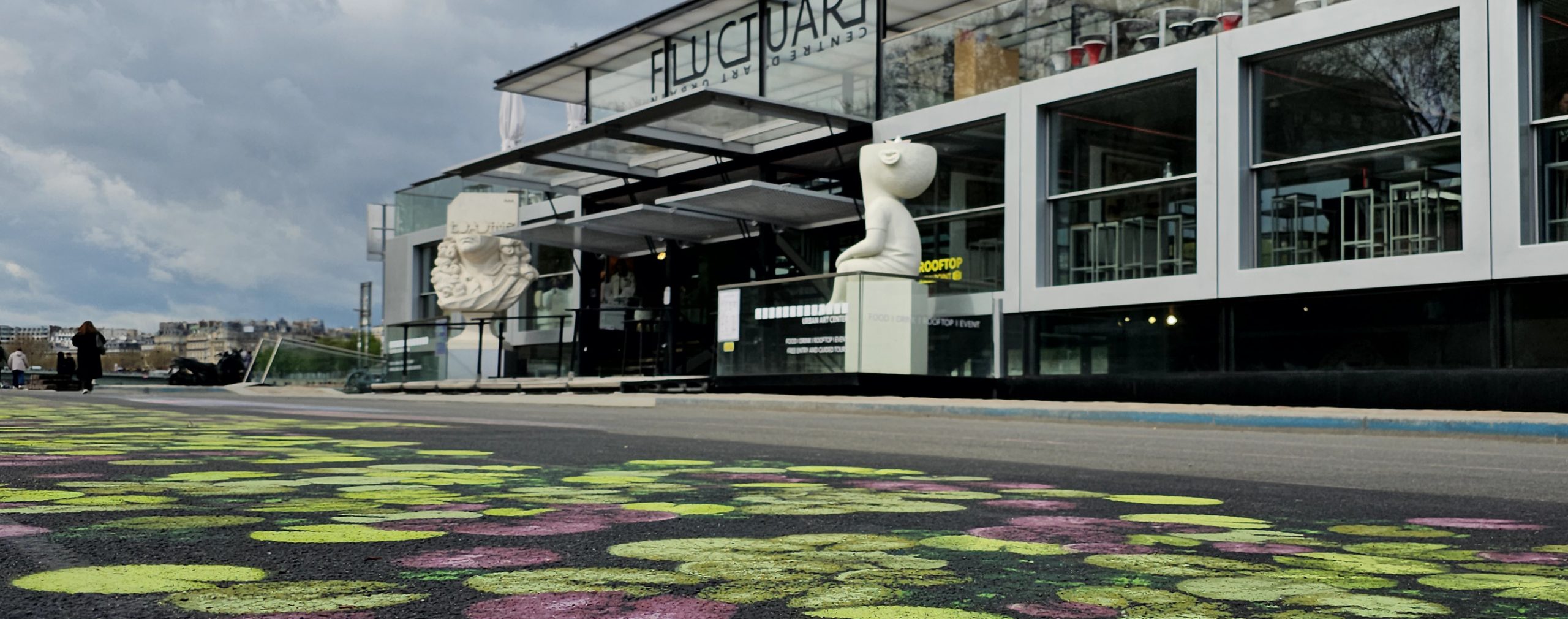 En Avril 2023, Logan Hicks reprend ses pochoirs pour livrer à Paris, sur la terrasse du centre d’art urbain FLUCTUART une nouvelle création qui témoignera de son amour pour la France où il aime à séjourner régulièrement.