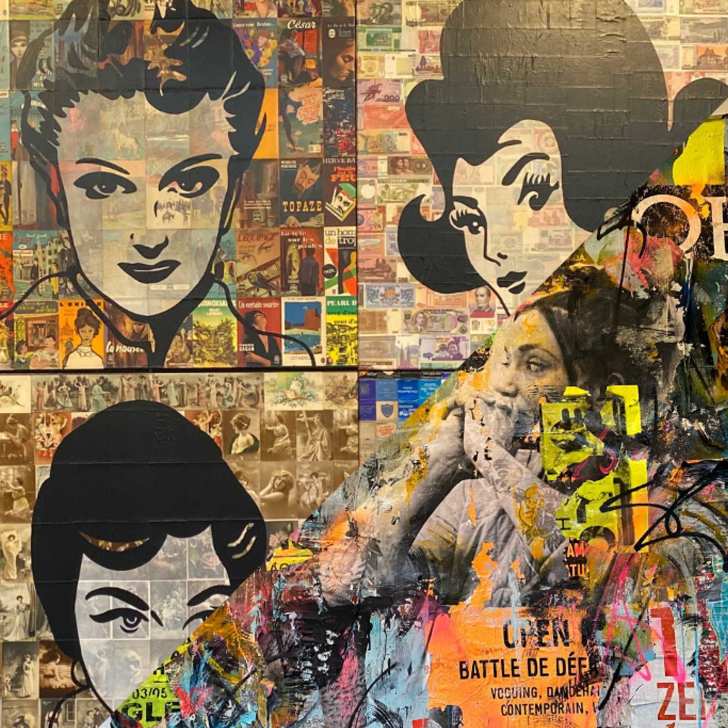 FKDL Franck Duval commence à peindre dans les années 80. Le dessin de mode, les arts du cirque et le cinéma, auxquels il s’est également essayé, influencent toujours son travail. Au cours des années 2000, c’est sous le nom de FKDL, qu’il explore la technique de l’Art Scotch*. Il fréquente alors de plus en plus le milieu de l’art urbain et colle ses premières silhouettes noires dans Paris en 2006. Passionné par la presse d’époque, il voit dans l’iconographie des années 20 aux années 70 les étoffes de papiers dont il pare ses personnages. Descendre dans la rue lui fait découvrir une forme de partage dont il ne se lasse pas. Il a depuis diversifié ses personnages, les a fait voyager, leur a fait prendre de l’ampleur. Le muraliste qu’il est devenu participe à de nombreux projets et multiplie les collaborations.