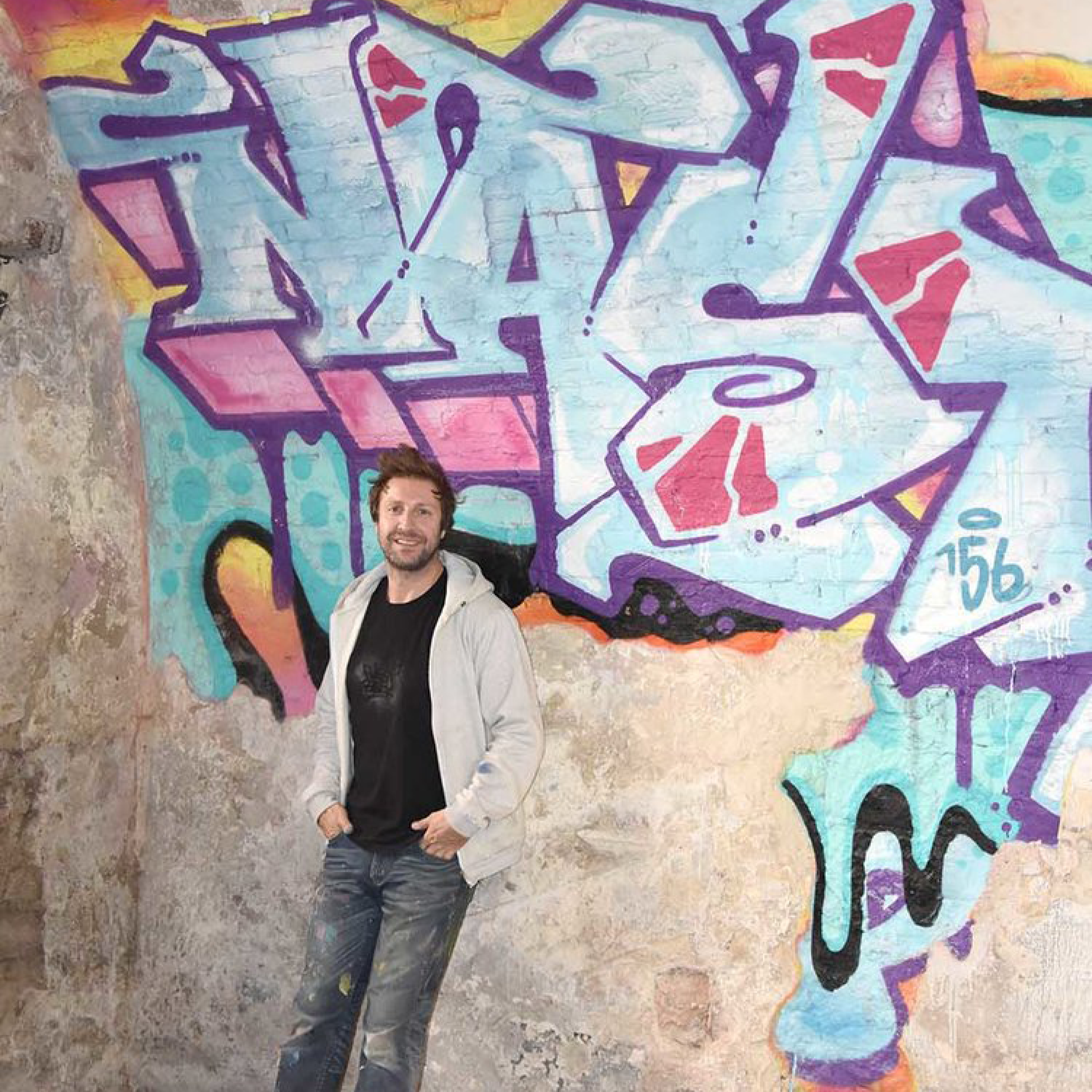 Born in 1975, Nasty began painting on walls in 1988 at the age of 13. Influenced by New York graffiti and the hip-hop movement, he took up graffiti in Paris and quickly attracted attention for his work in the metro and on the city’s walls. He distinguished himself with bright colours and simple lettering, fuelled by his interest in calligraphy. In 1990, he joined the AEC (Artistes En Cavale) group, made up of equally ambitious and passionate individuals.