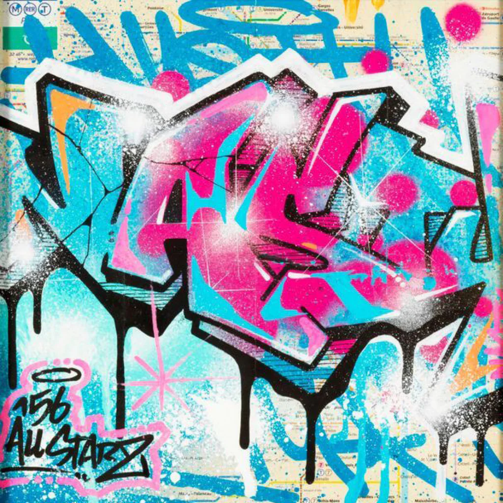Né en 1975, Nasty commence à peindre sur les murs en 1988 à l’âge de 13 ans. Influencé par le graffiti new-yorkais et le mouvement hip-hop, il débute le graffiti à Paris et se fait rapidement remarqué à travers son activité dans le métro et sur les murs de la capitale. Il se distingue avec des couleurs vives et des lettres simples, nourries par son intérêt pour la calligraphie. En 1990, il rejoint le groupe AEC (Artistes En Cavale), composé d’individus tout aussi ambitieux et passionnés.