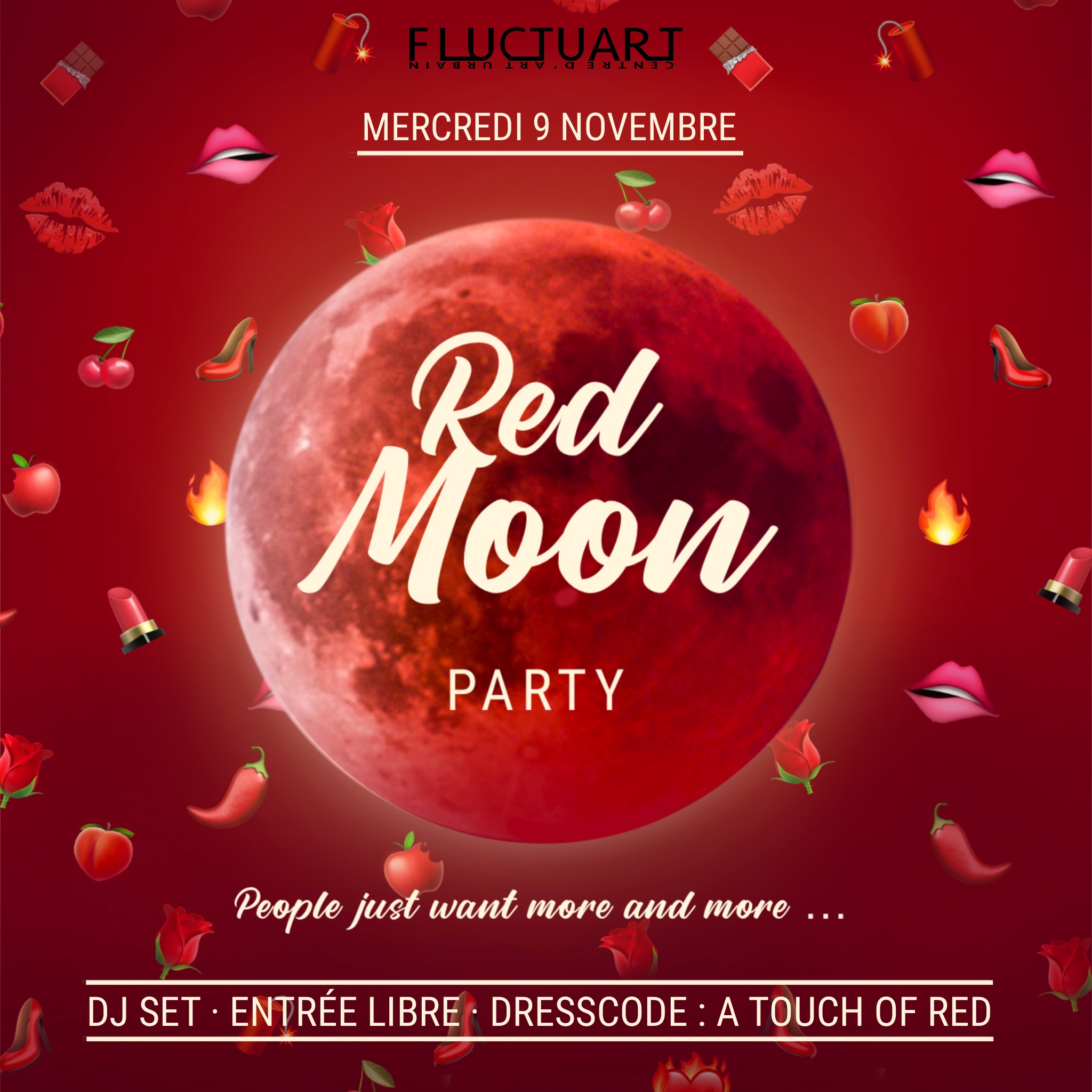 In order to warm up your hearts in the Parisian autumn and winter, Fluctuart offers you several home-made parties. For this first edition of the red moon, red wink obliges!