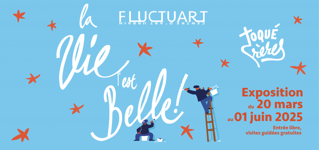 Détails de l’événement Cet événement s’est terminé le 01 juin 2025 Lieu: Fluctuart Catégories: EXPOSITIONS LA VIE EST BELLE ! ET VOUS ÊTES COMME ELLE ! Du 20 mars au 1er juin 2025 Fluctuart invite les Toqué Frères à investir son centre d’art pour mettre des couleurs dans nos vies. Experts typographes, leur travail allie … Lire la suite de TOQUÉ FRÈRES – LA VIE EST BELLE !