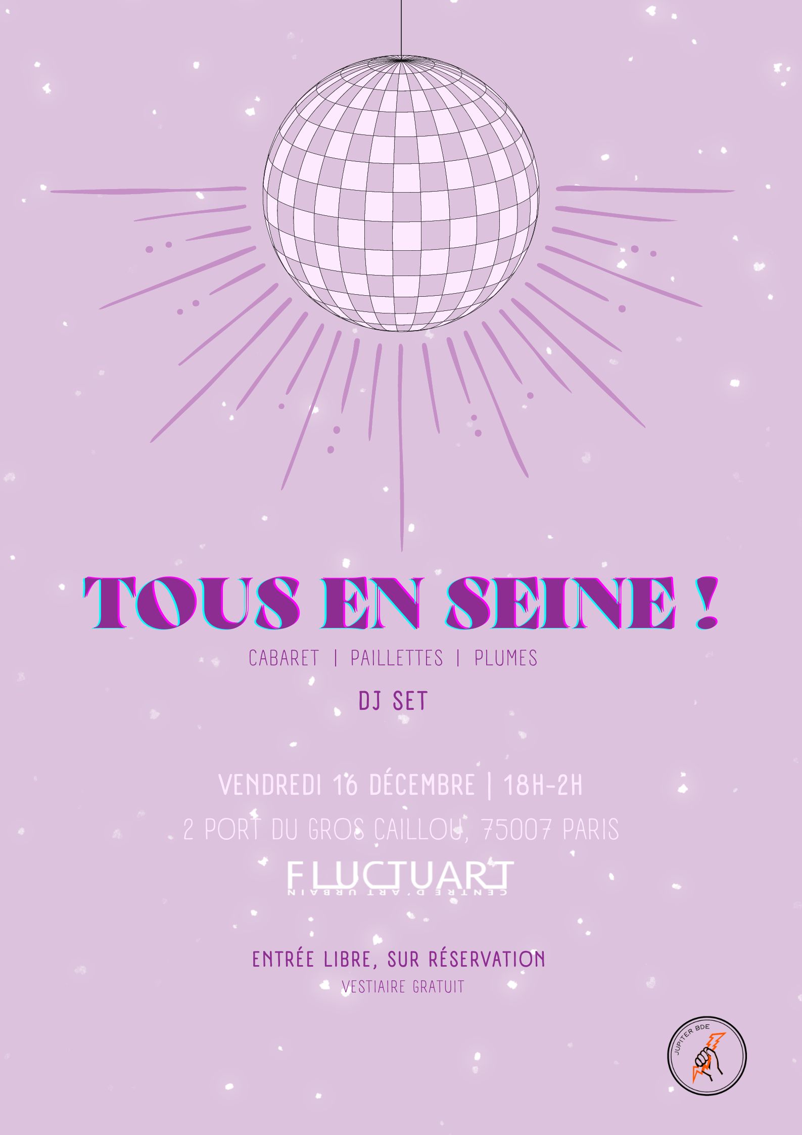 Si tu es un jeune artiste ou futur professionnel des arts, viens danser et rencontrer des gens avec les mêmes passions que toi. Au programme : cabaret, paillettes et 3 DJ Sets.